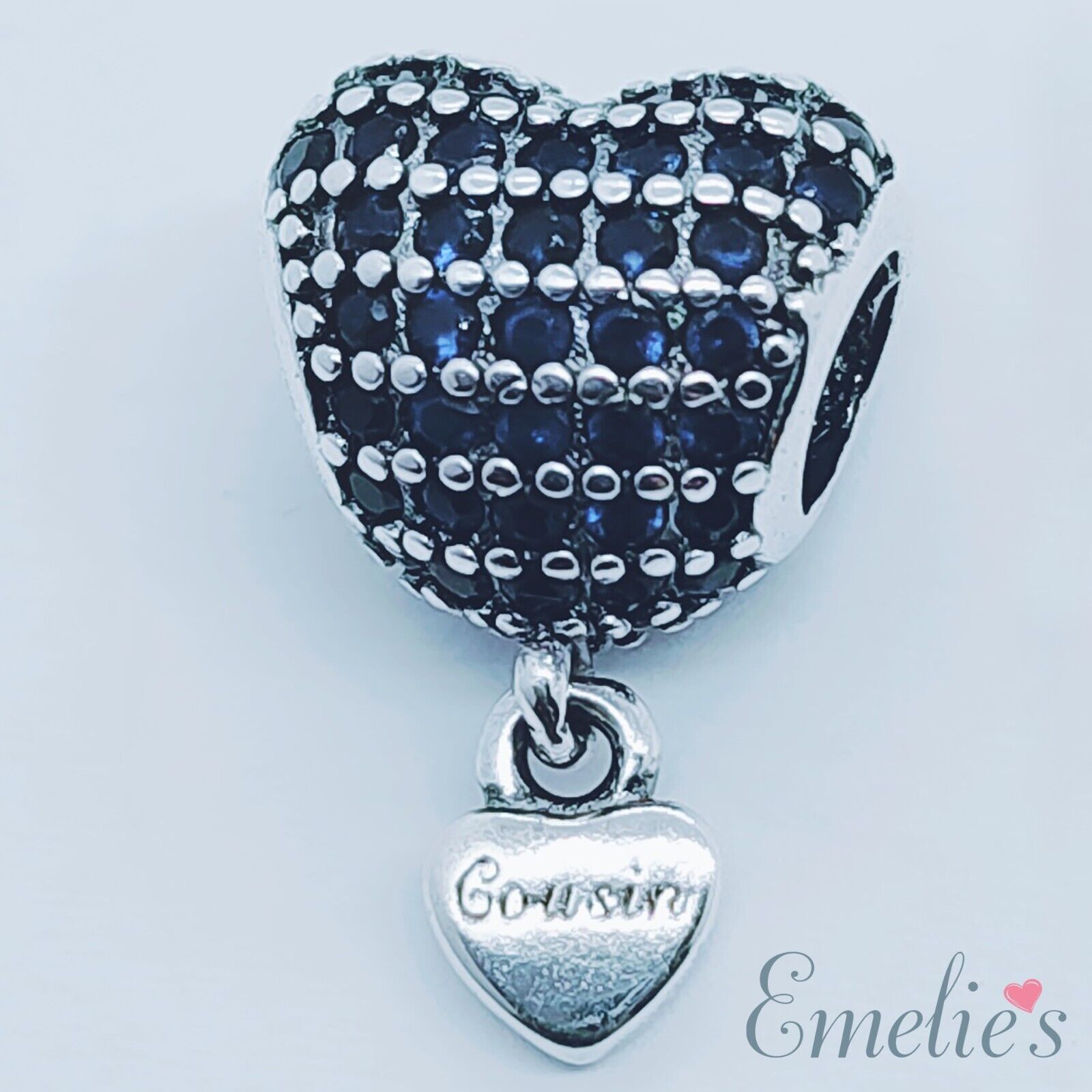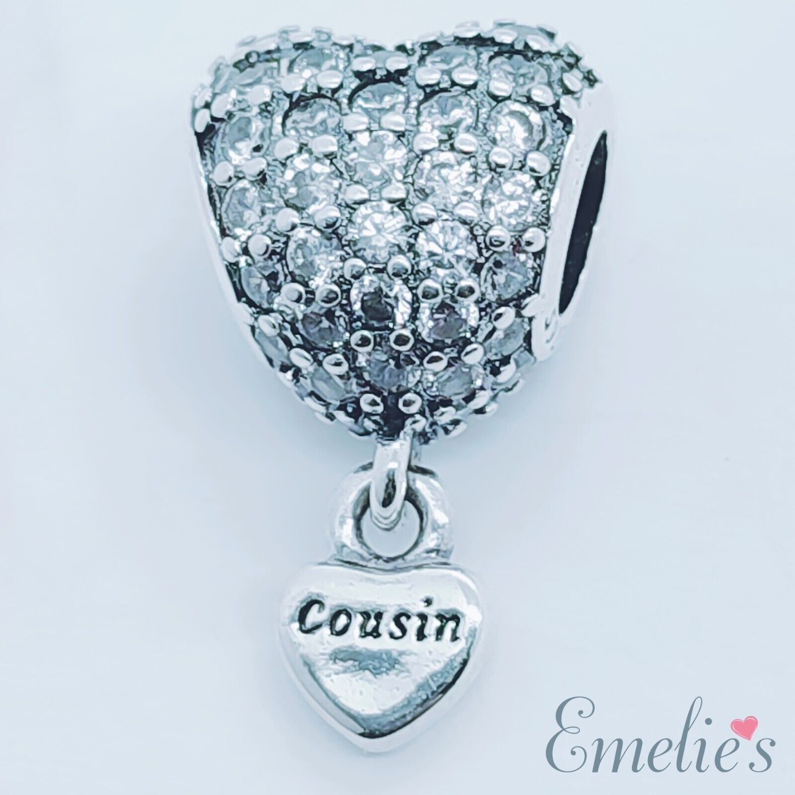 Cousin Charm for Pandora Bracelet. Crystal 925 Sterling Silver. Cousin Gift