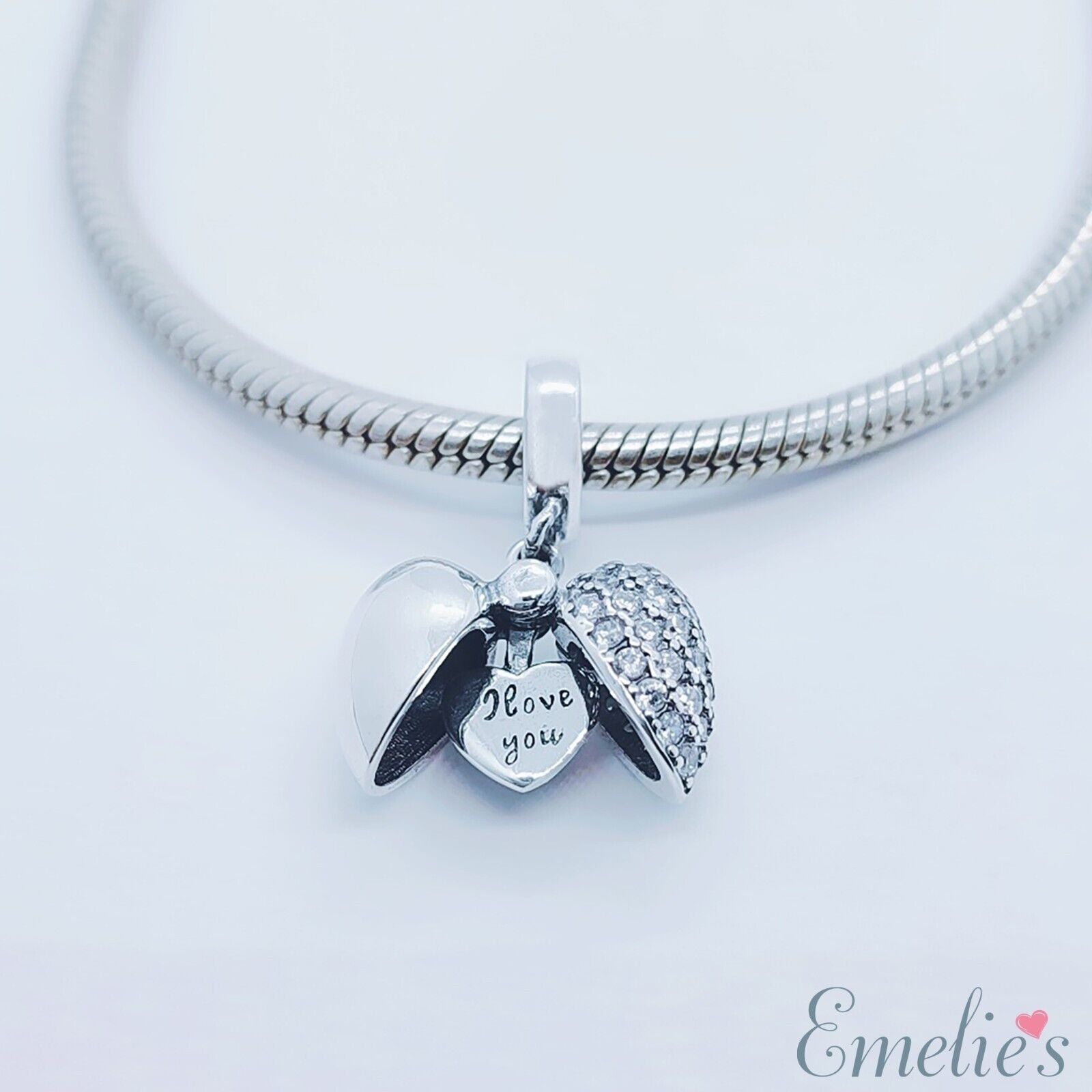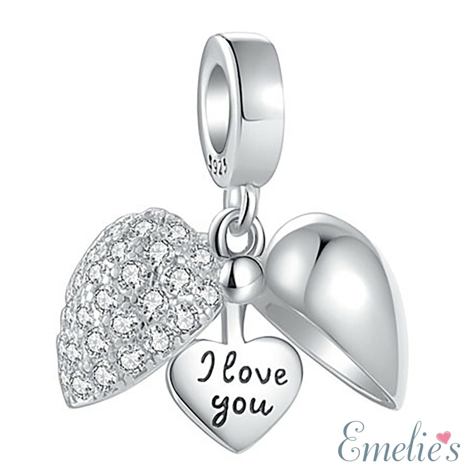 I Love You Heart Charm for Pandora Bracelet. 925 Sterling Silver