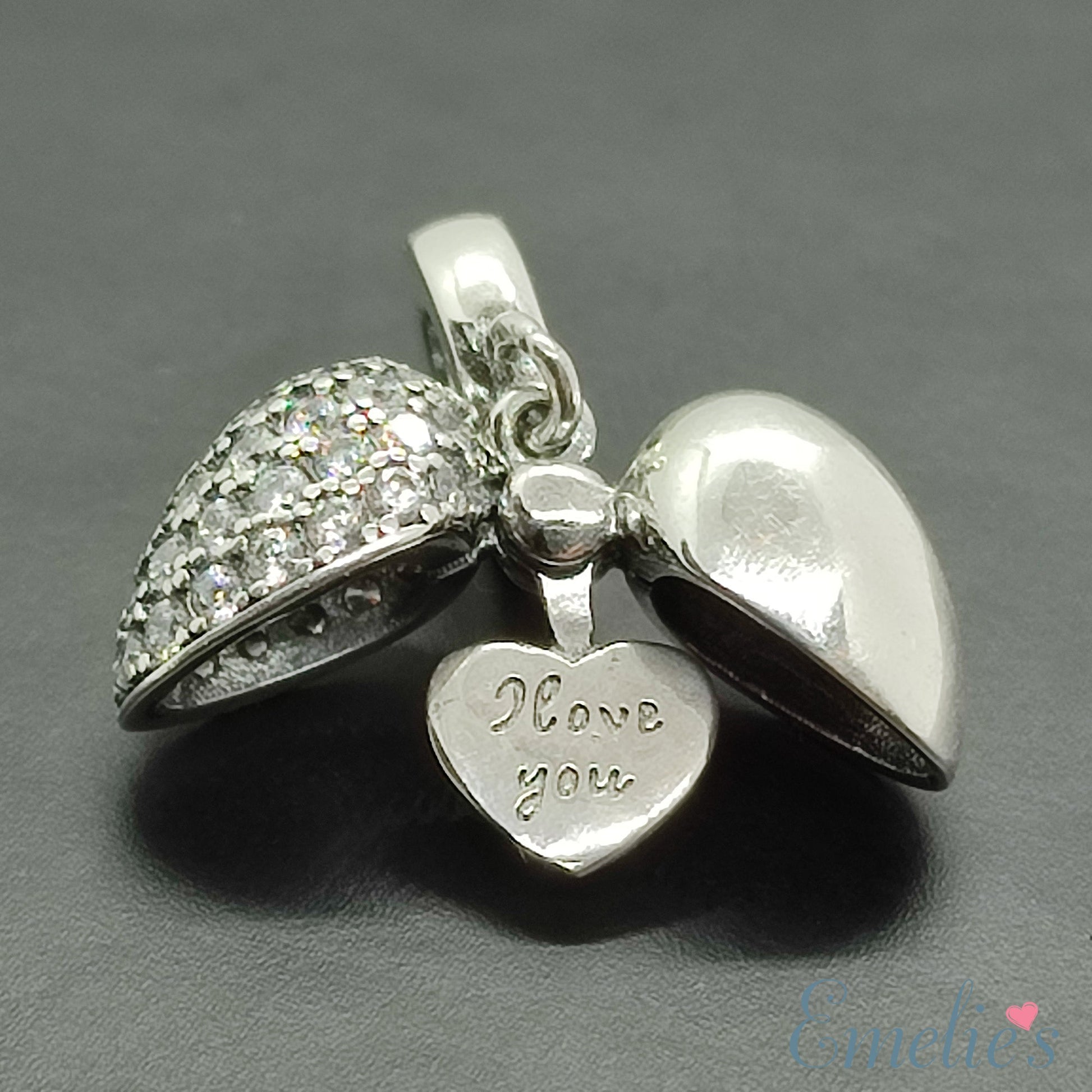 Open Crystal Sterling Silver Heart to reveal silver heart inside engraved with I Love You on both sides.