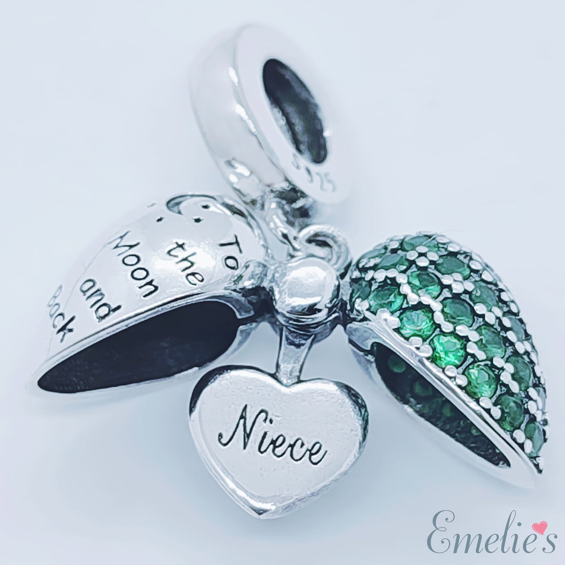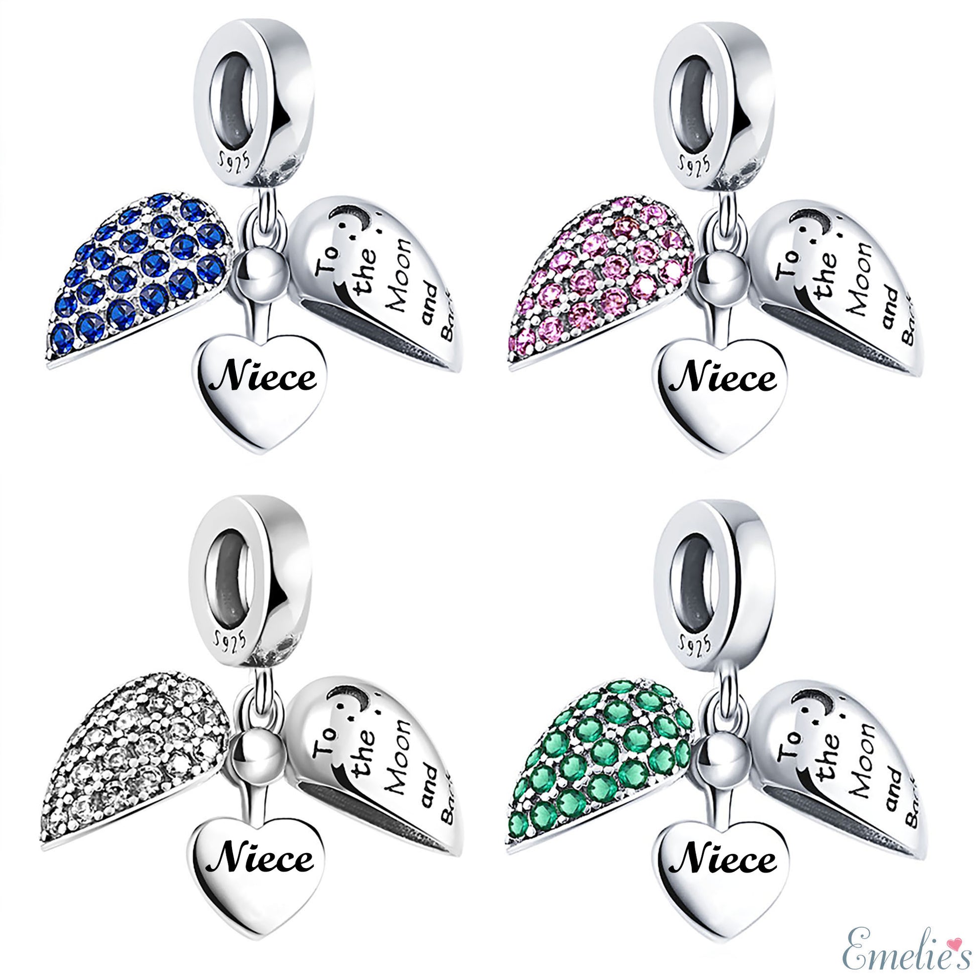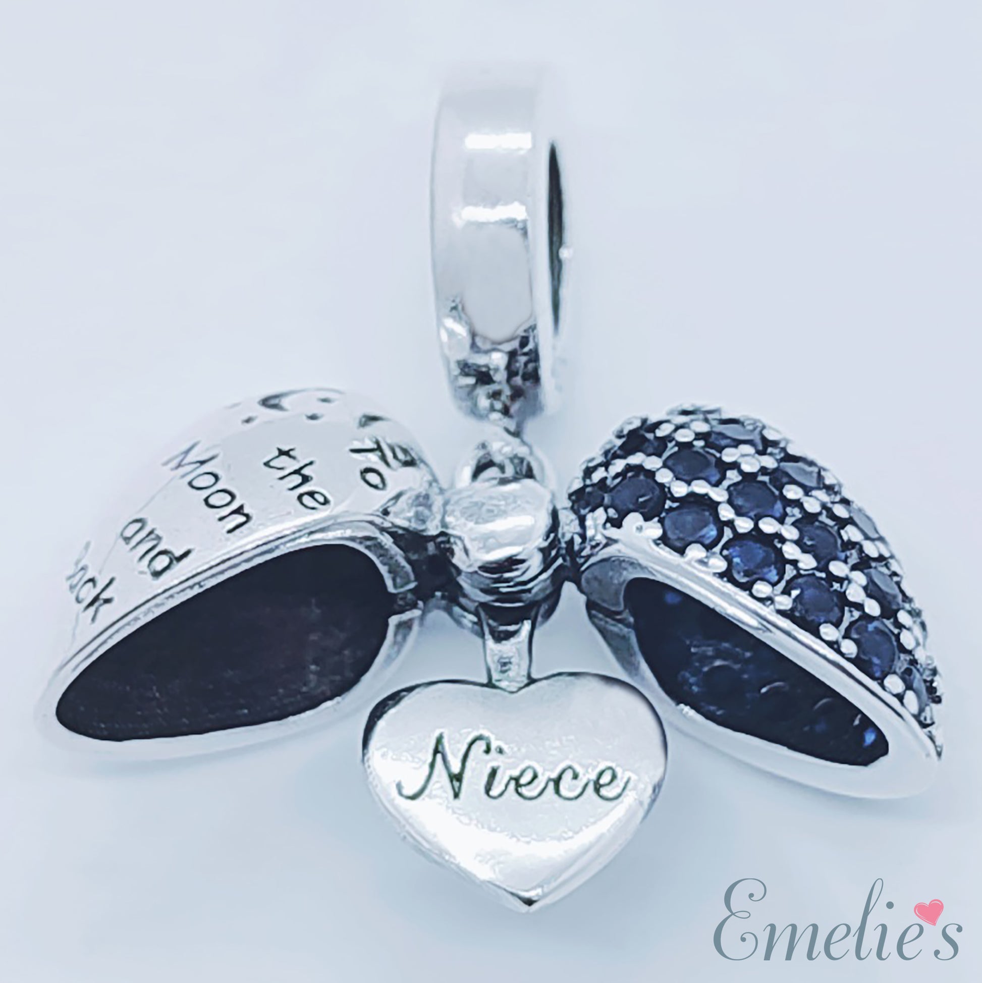 Niece I Love You To The Moon and Back Heart Pendant and Necklace. Pendant also fits Pandora Bracelet. Available in 4 colours