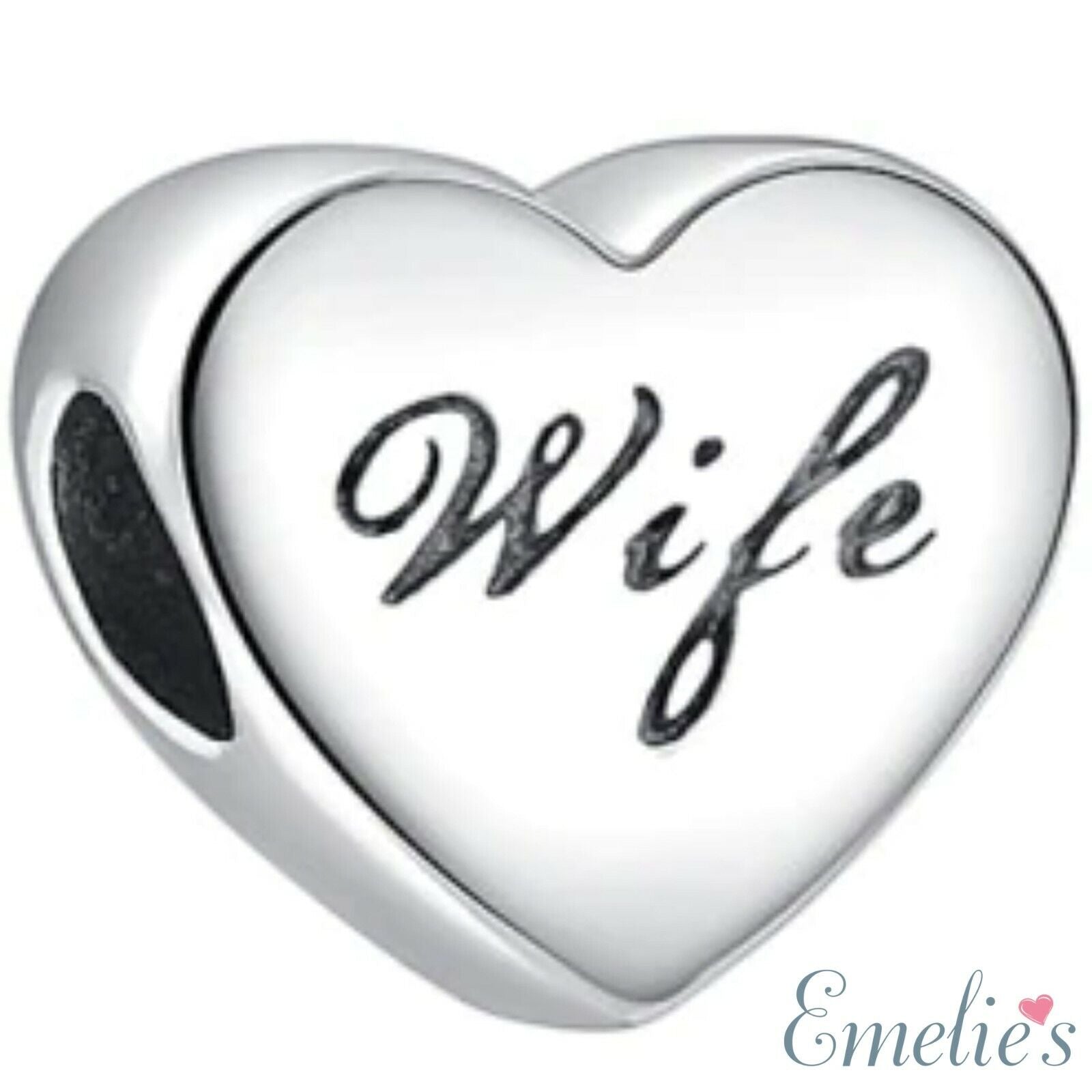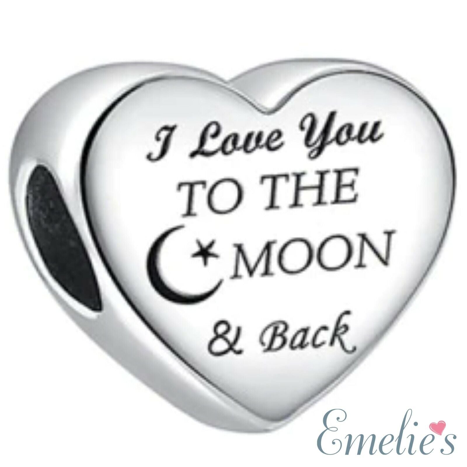 Wife I Love you to the Moon and Back Charm for Pandora Bracelet. S925 Sterling Silver