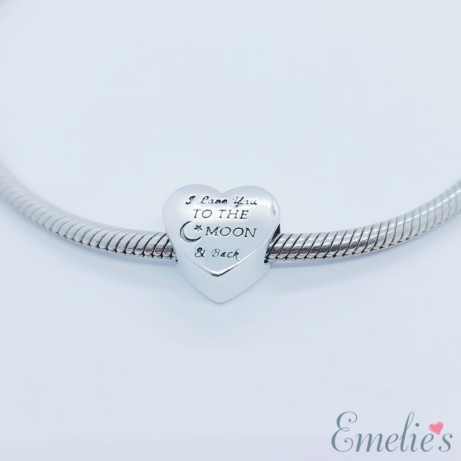 Style: Beautiful authentic 925 Sterling Silver Wife "I Love you to the Moon and Back" Charm. A perfect addition to any top brand charm bracelet.